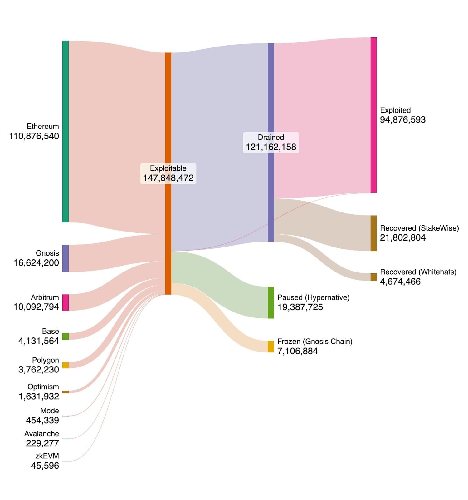 So far, around $19M has been recovered due to a swift response. However, according to Crystal Intelligence, around 52% of the drained assets have already reached addresses controlled by the hacker, whereas 40% of total stolen assets were transferred using services that make token tracing arduous, or even impossible.