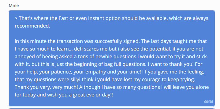 An additional indicator that you're dealing with a scammer is if their username is not green. The only users with green usernames are the ones from the DeFi Saver team - so even if someone is trying to impersonate a team member you spoke to, you'll notice it if the username is in white.